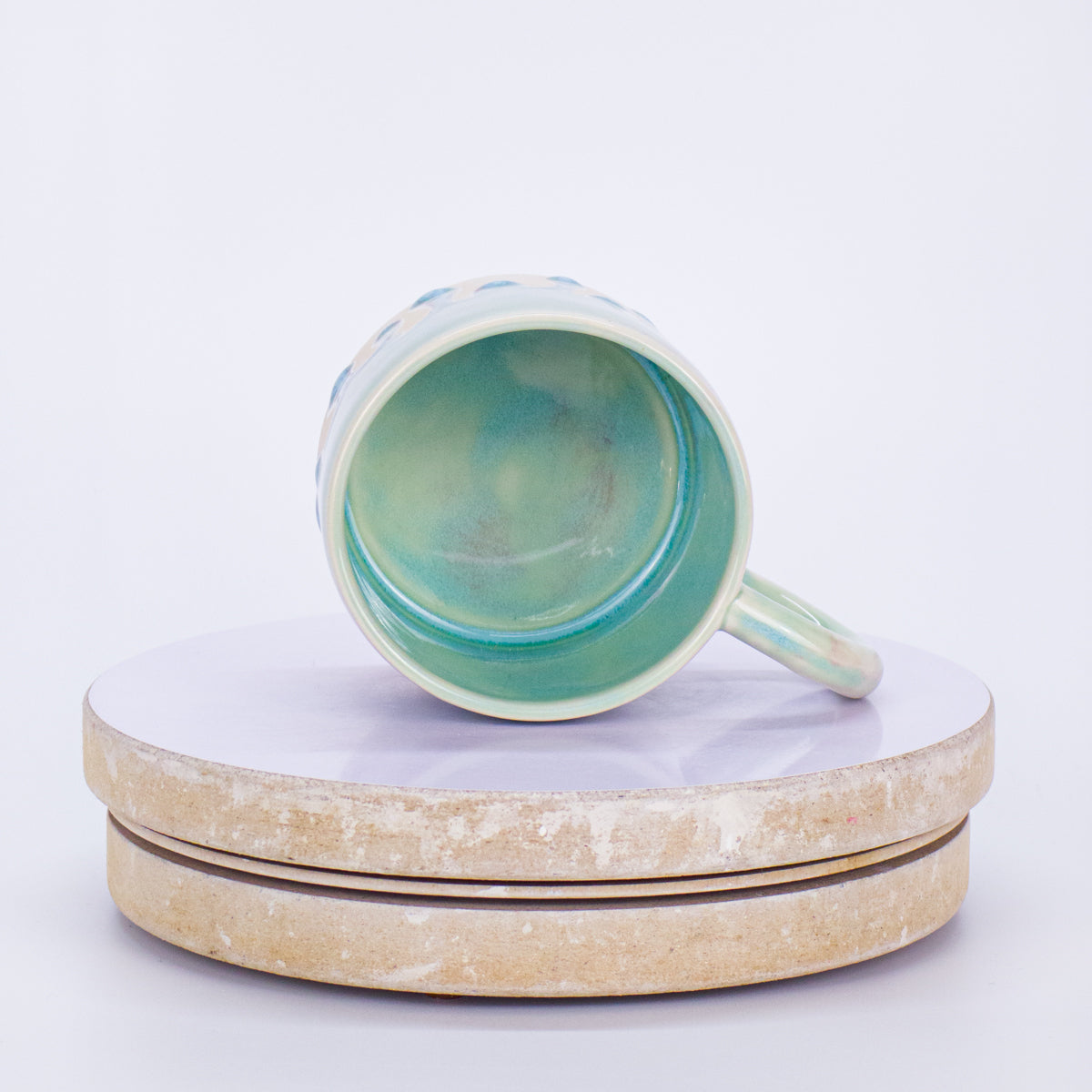 Odlewany i ręcznie malowany kubek z napisem.