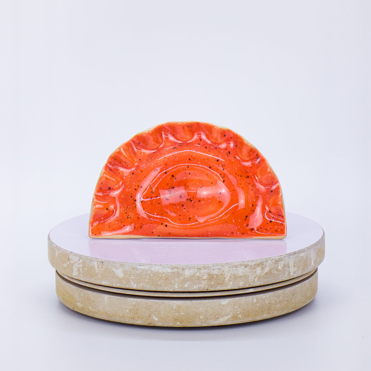Ręcznie lepiony i malowany pieróg. Może służyć jako podstawka pod łyżkę, ozdoba na stół lub cokolwiek sobie wymyślisz.